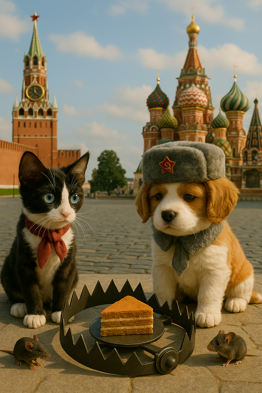 雪花飄落在紅場上空,阿寶與Deven穿上毛絨斗篷與金邊帽,